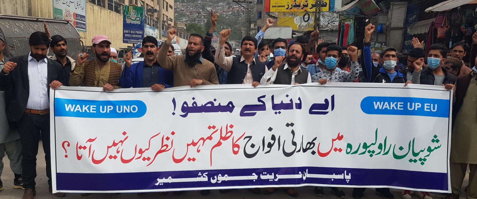 Muzaffarabad: A protest was prompted under the aegis of Pasban-e-Hurriyat Jammu and Kashmir against siege and terroist activities patronage by Indian Military and Intelligence in Indian Occupied Kashmir (IOK).