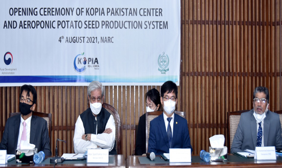 Islamabad, (Parliament Times) : Opening ceremonies of KOPIA Pakistan Centre and Aeroponic Potato Seed Production System was held at NARC Islamabad in which Syed Fakhar Imam, Federal Minister for M/o NFS&R, Islamabad was the Chief Guest. Dr. Muhammad Azeem Khan Chairman PARC, SUH SangPyo, Korean Ambassador, Dr. Chu Gyong-rae Director KOPIA Pakistan Centre, Dr. HUR Taewoong, Administrator Korean Rural Development Administration, was also participants of the event.