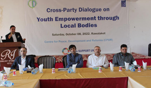 Addressing a Cross-Party Dialogue on ‘Youth Empowerment through Local Bodies’ hosted in picturesque valley of Rawalakot, AJK, by the Center for Peace, Development and Reforms (CPDR), and supported by UNDP; political leaders belonging to all major political parties of AJK including Pakistan Muslim League (PML-N), Pakistan Tehreek-e-Insaf (PTI), Pakistan People’s Party (PPP), Jamaat-e-Islami, and All Jammu and Kashmir Muslim Conference called for emergence of an effective and financially empowered local government system in the State.