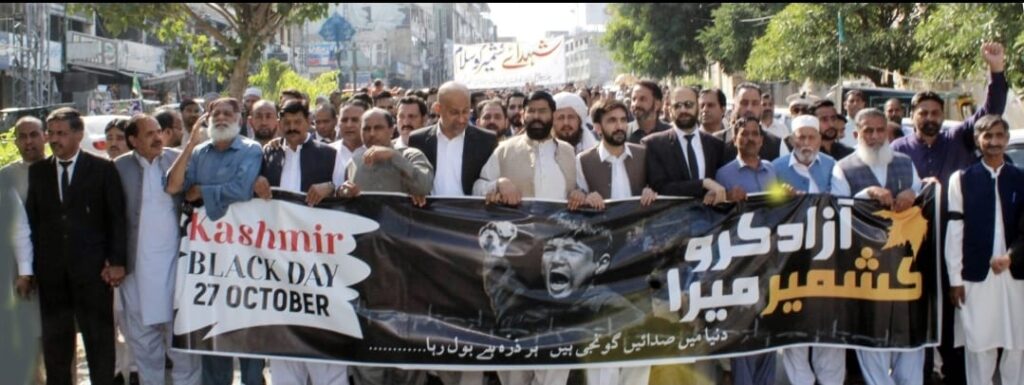 Our Special Jammu and Kashmir Correspondent Altaf Hamid Rao reports from Mirpur Jammu & Kashmir people inhibiting both sides of the line of control – AJK and IIOJK, besides rest of the world observed black day on Friday – October 27 to mark strong protest and indignation against the continual forced and unlawful occupation of Jammu & Kashmir state for the last 76 years since this bleak day of 1947.