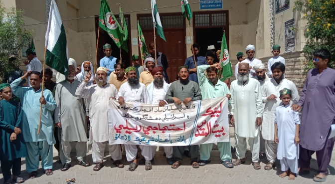 LARKANA : Last day in Larkana, the head of Pakistan Sunni Tehreek Mohammad Shadab Raza Naqshbandi of PST took out a rally from Jama Masjid Sadat Resham Gali of the city to express solidarity with Palestine and against Israeli aggression. The club reached the front, where these leaders and workers carried banners and organizational flags in their hands and shouted slogans. Addressing the rally on this occasion, the senior provincial leader of Pakistan Sunni Tehreek Sindh Maulana Ali Nawaz Qasmi, Shamsuddin Sarohi, Hafiz Madad Ali Qadri, Hafiz Aslamuddin, Mufti Abdul Rehman, Qamaruddin, Haji Roshan, Gulab Khan, Sajid Ali Kemitu, Ata Allah Abaro, Agha Arshad Kahwar and others said that during the last 6 months, the oppressed Palestinian children and women are being massacred, which is in front of the entire Islamic world, due to which PST celebrated Eid Al-Fitr with simplicity and canceled all Eid meeting parties. have done They said that during these 6 months, 35 thousand innocent Palestinian Muslims have been martyred in the terrorist country of Israel in Gaza, for which the entire Muslim community has to raise their voice for Palestine together on a platform, because the oppression that Israel is doing in Gaza. All this cruelty is taking place under the auspices of the United States, while Israel is trying to establish an illegal state in Gaza in order to eliminate the existence of Muslims from the map of the world. They are getting angry, but still they are raising the voices of Allah Akbar, for which all the Muslim countries of the world should boycott all the products of Israel, while under a conspiracy in Gaza, the food, food, medicine of the Muslims And other necessary things have been closed, which is cruelty and abuse, but at this time the United Nations has blindfolded and silenced the tongue. Therefore, all the Muslim countries of the world should raise their voice against Israel’s oppression, oppression and oppression and help the Palestinian Muslims.