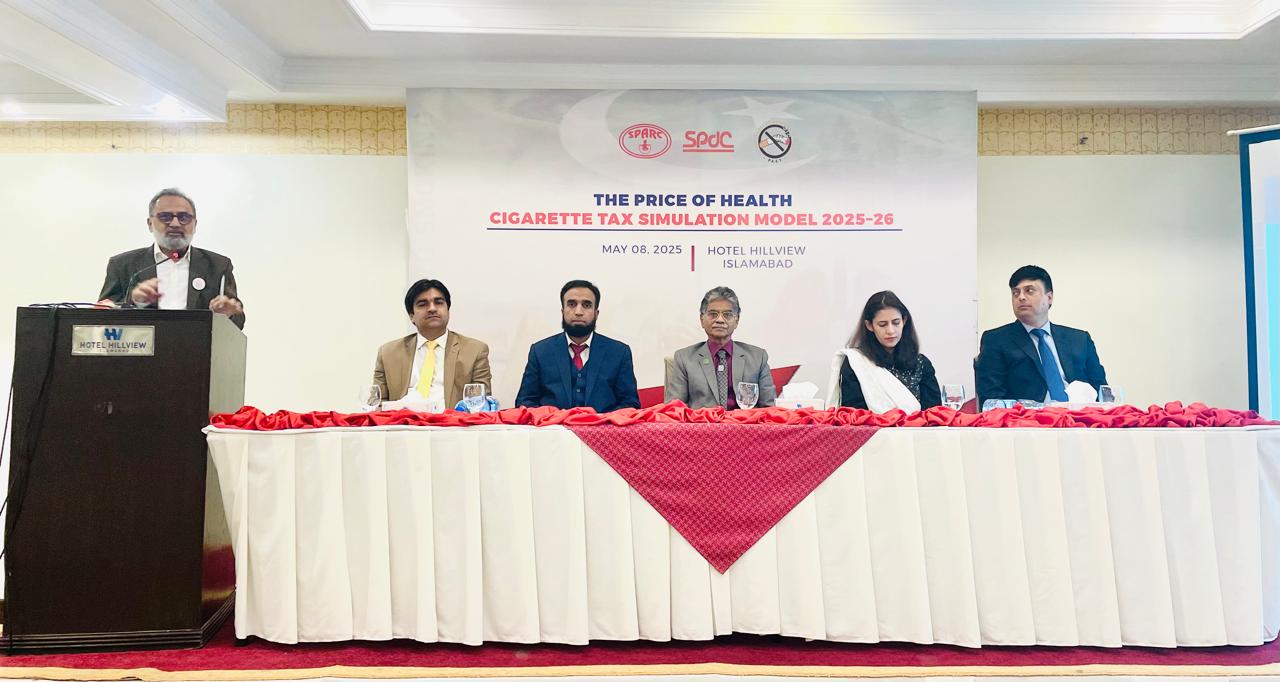 Islamabad,(Parliament Times) : The Society for the Protection of the Rights of the Child (SPARC), in collaboration with the Social Policy and Development Centre (SPDC), launched “The Price of Health: Cigarette Tax Simulation Model 2025–26.” This model provides evidence-based insights into how effective tobacco taxation can improve public health outcomes and generate vital government revenue. According to the model, if the government increases the Federal Excise Duty (FED) on cigarettes by Rs. 39 per pack in the upcoming fiscal year, it could generate an additional Rs. 67.4 billion in revenue.