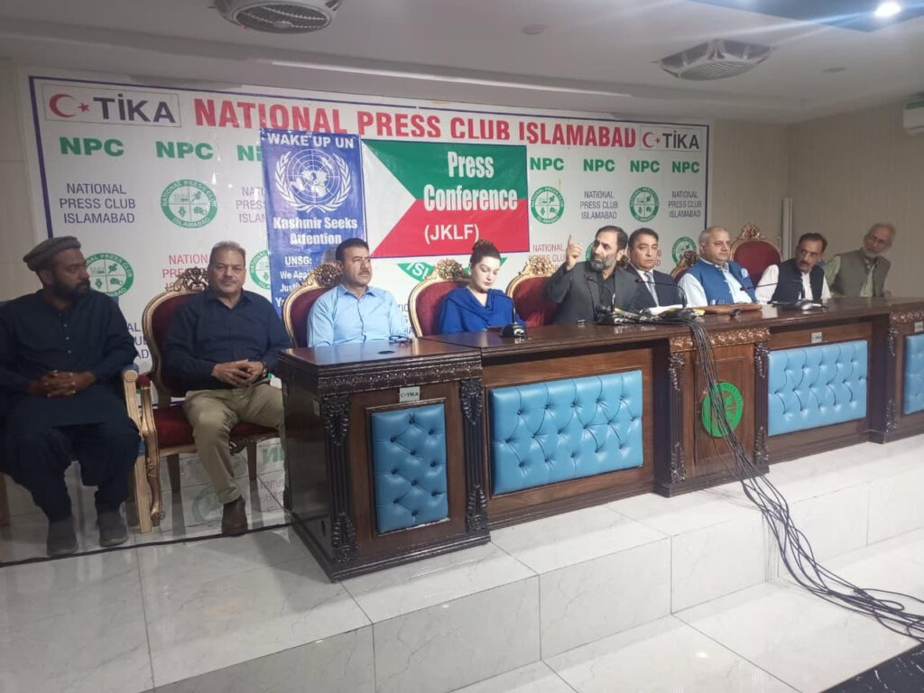 Islamabad, (Parliament Times) : The JKLF leaders Muhammad Rafiq Dar (Chief Spokesman) and Saleem Haroon (Vice Chairman) along with Mushaal Hussain Mullick (wife of Yasin Malik), Barrister Tariq Mehmood (UK based renowned lawyer from international law firm “Med-Arb-International”) and Afzal Butt (President PFUJ) today in a joint press conference held at National Press Club Islamabad (NPCI) briefed the media about the petition filed recently (on 29 October) against Indian government in United Nations Special Procedures Branch (UNSPB) and United Nations Working Group on Arbitrary Detention (UNWGAD) on Death Penalty Petition and other injustices met with the most popular pro-freedom Kashmiri political leader and Chairman JKLF Mr. Muhammad Yasin Malik, who is languishing in infamous Delhi Tihar Jail in India for last over six consecutive years.